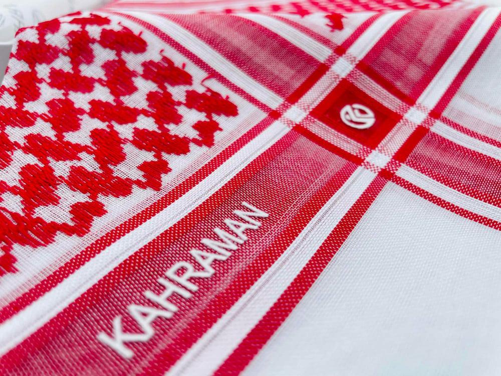 شماغ احمر فاخر من ماركة كهرمان، تم تصميم الشماغ الاحمر بمعايير أوروبية في صناعة الشماغ الأصلي مما يجعله من افضل الأشمغة العربية المنافسة لأي شماغ آخر والذي يمنحك مظهراً انيقاً، يعتبر من أفضل الاشمغة الفاخرة في متجر ويل تشويز. متوفر الان