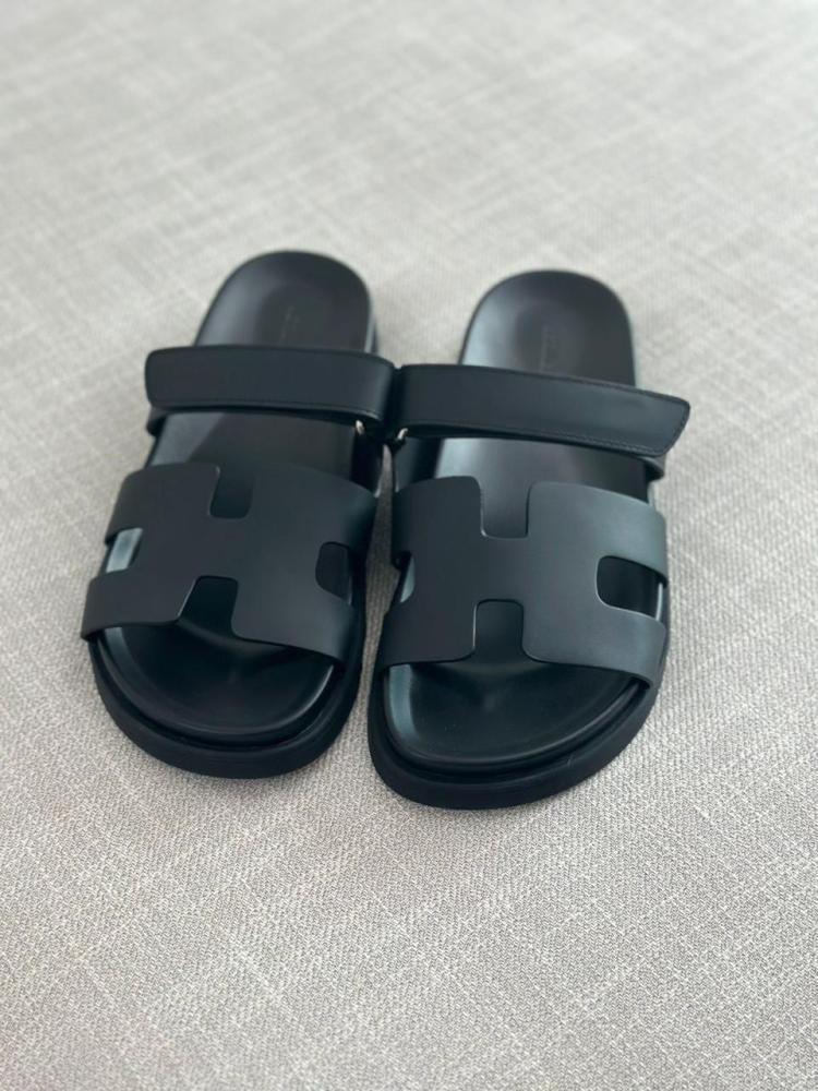 استمتع بالأناقة والراحة مع صندل “هيرميس شايبر” الرجالي المصنوع من الجلد الناعم باللون الأسود. يتميز هذا الصندل بتصميمه الفريد الذي يجمع بين الفخامة والعملية، مع حزام عريض يحمل توقيع “هيرميس” المتمثل في سلاسل “Chaîne d’ancre” الشهيرة.