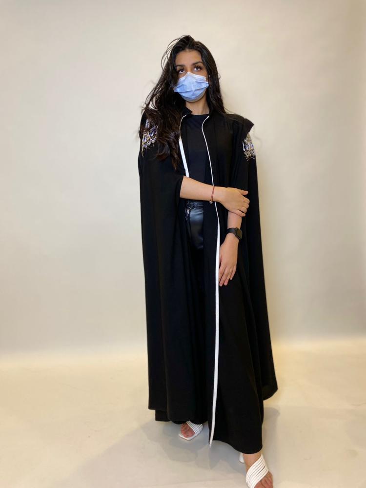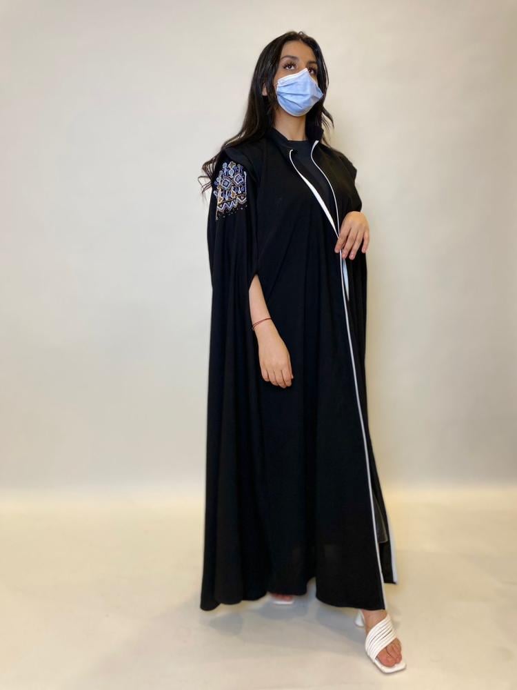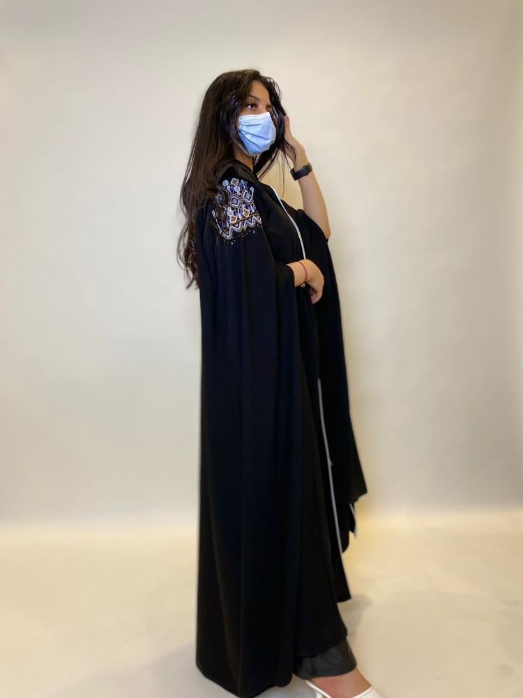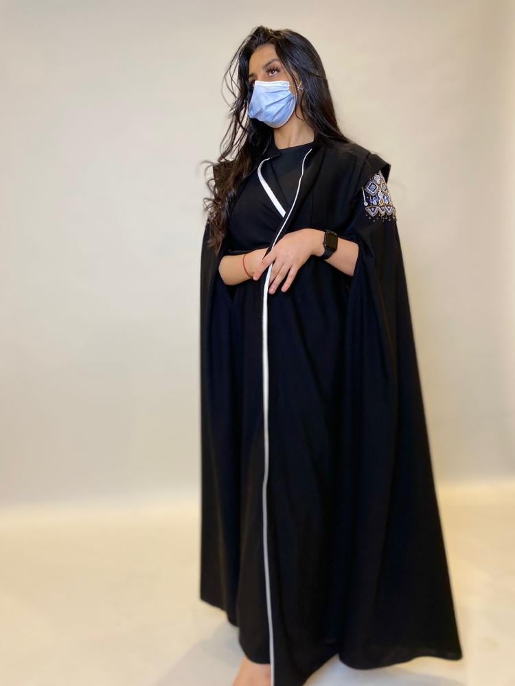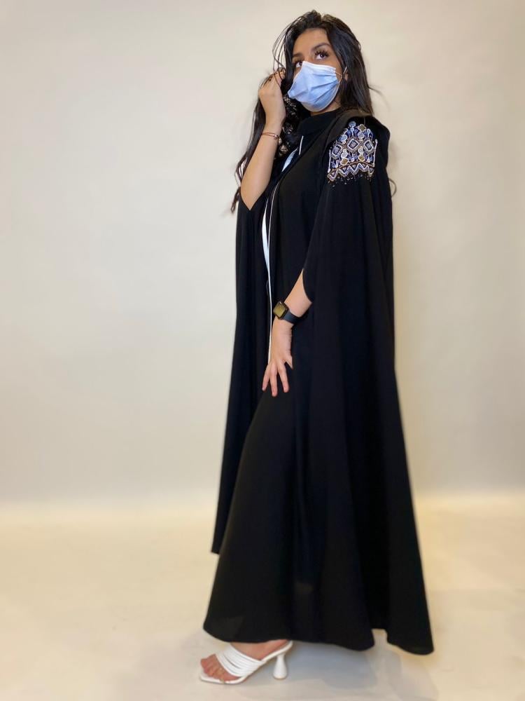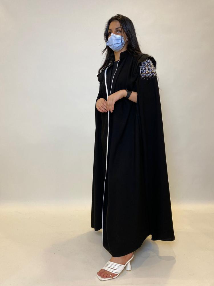 تفاصيل عناية بالتصميم: تأتي العباية بتفاصيل دقيقة ومتقنة تظهر اهتمامًا بالتفاصيل ورقي في التصميم.