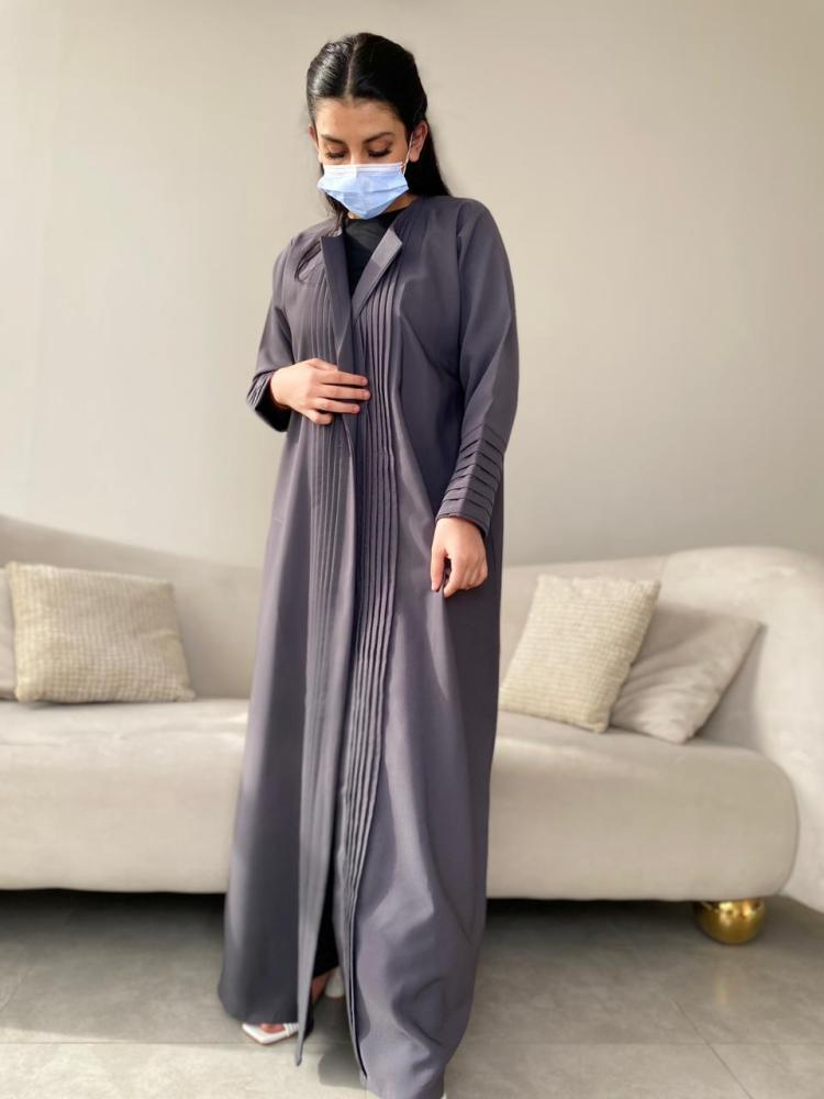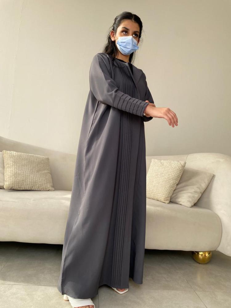 تفاصيل عناية بالتصميم: تأتي العباية بتفاصيل دقيقة ومتقنة تظهر اهتمامًا بالتفاصيل ورقي في التصميم.