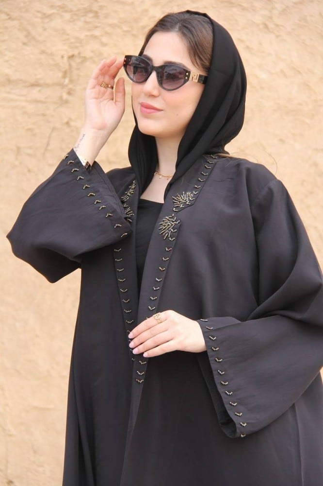 - تفاصيل عناية بالتصميم: تأتي العباية بتفاصيل دقيقة ومتقنة تظهر اهتمامًا بالتفاصيل ورقي في التصميم.