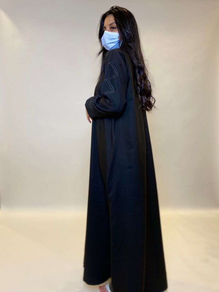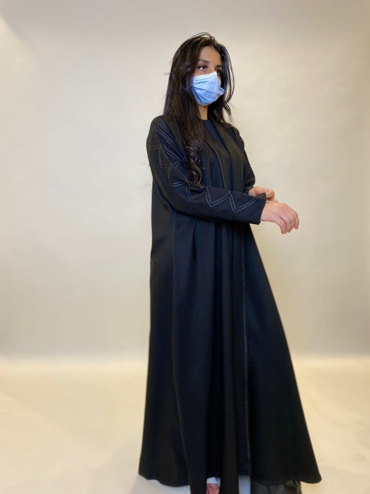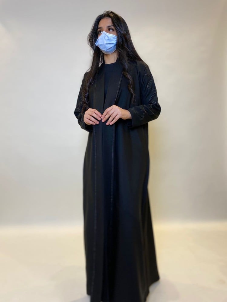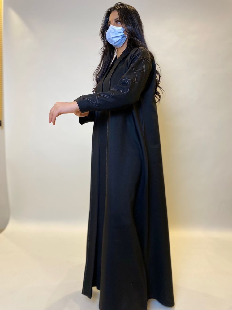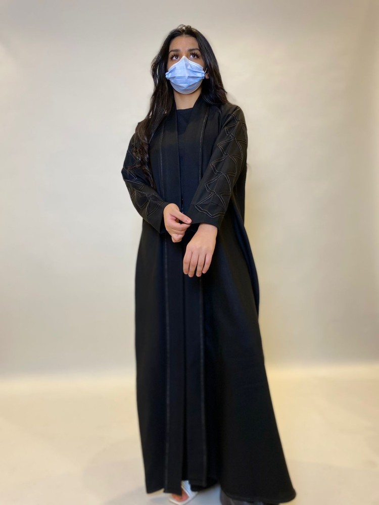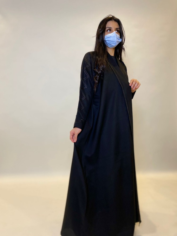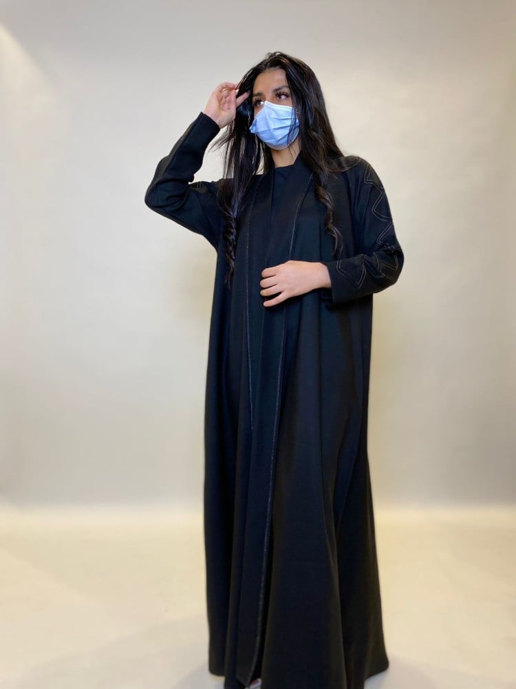تفاصيل عناية بالتصميم: تأتي العباية بتفاصيل دقيقة ومتقنة تظهر اهتمامًا بالتفاصيل ورقي في التصميم.